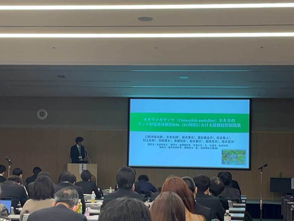 ○野木瞭太郎、杉本光輝、新井博文、高杉美佳子、前多隼人、村上由希、神田靖士、後藤知佐、松永範久、細見亮太、福永健治.オオウメガサソウ(Chimaphila umbellata)エキスのラット好塩基球細胞 RBL-2H3 における脱顆粒抑制効果.